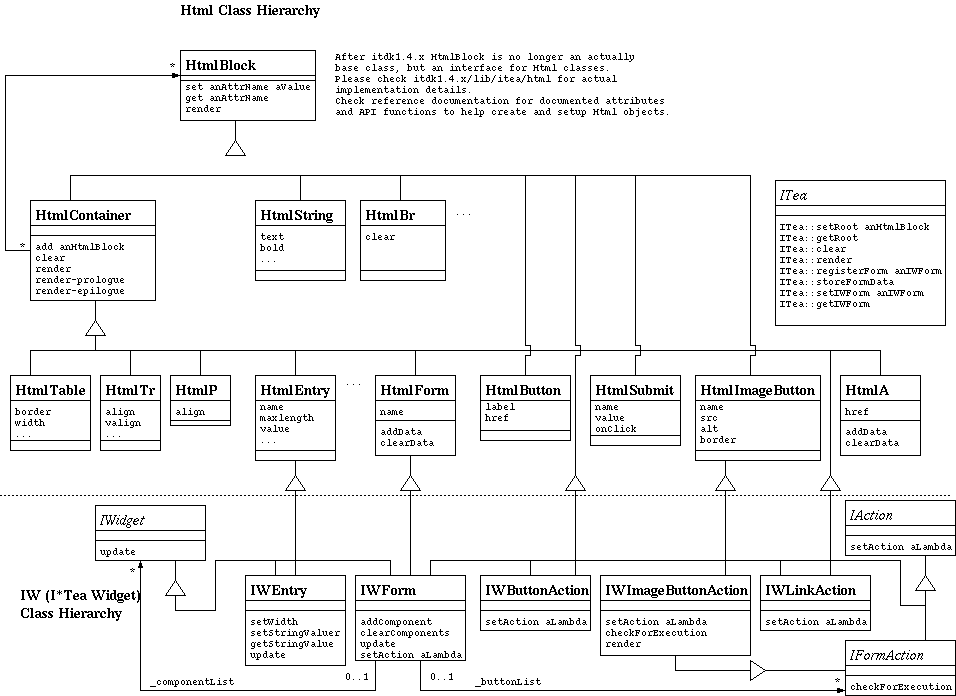 A very incomplete UML draft of the class diagram of HTML and IWidget objects.